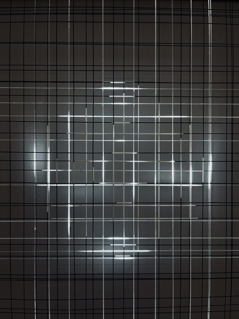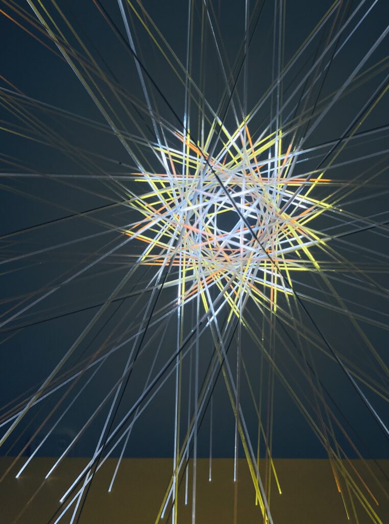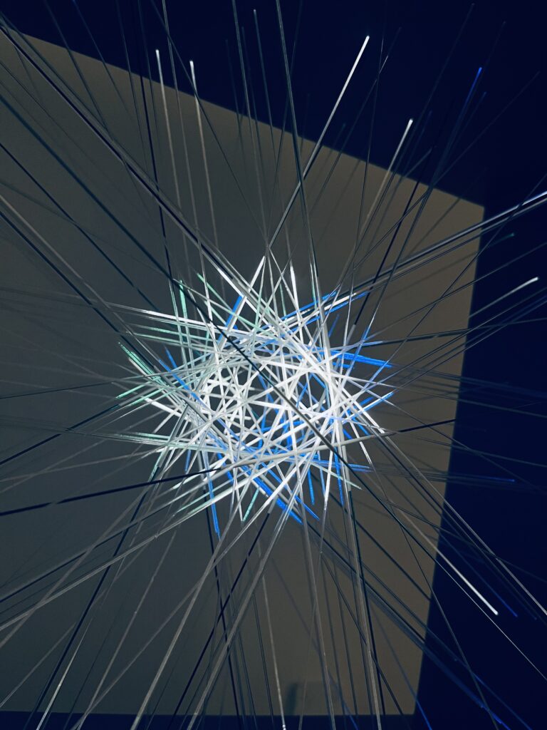 Obra de Pablo Armesto en Proyecto H. DMF lacado, fibra óptica, aluminio tintado y LED. Vista en Art Week, febrero 2026. Fotos mías.