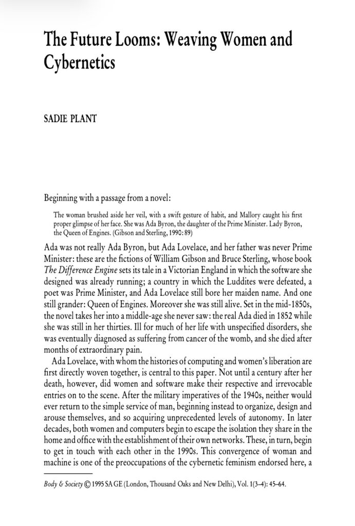 Démosle más vueltas a la madeja. Durante siglos las mujeres fueron archivadoras, traductoras, mediadoras, cuidadoras. Hardware antes del hardware. Wetware, como dice Sadie Plant: matrix viva. Mujeres como máquinas humanas de cálculo, organización y memoria. Incluso en la actualidad el capital industrial, especialmente en sectores tech, feminiza el ensamblaje: se prioriza la destreza fina, los dedos ágiles, la paciencia rentable, los cuerpos “manejables” en turnos largos. Claro que, en cuanto el trabajo se vuelve certificado, especializado o mejor pagado, cambia el reparto: el trabajo de ellas se invisibiliza y ellos emergen como los grandes genios. Pero no olvidemos que fue la brillante Ada Lovelace quien primero entendió el lenguaje de las computadoras.